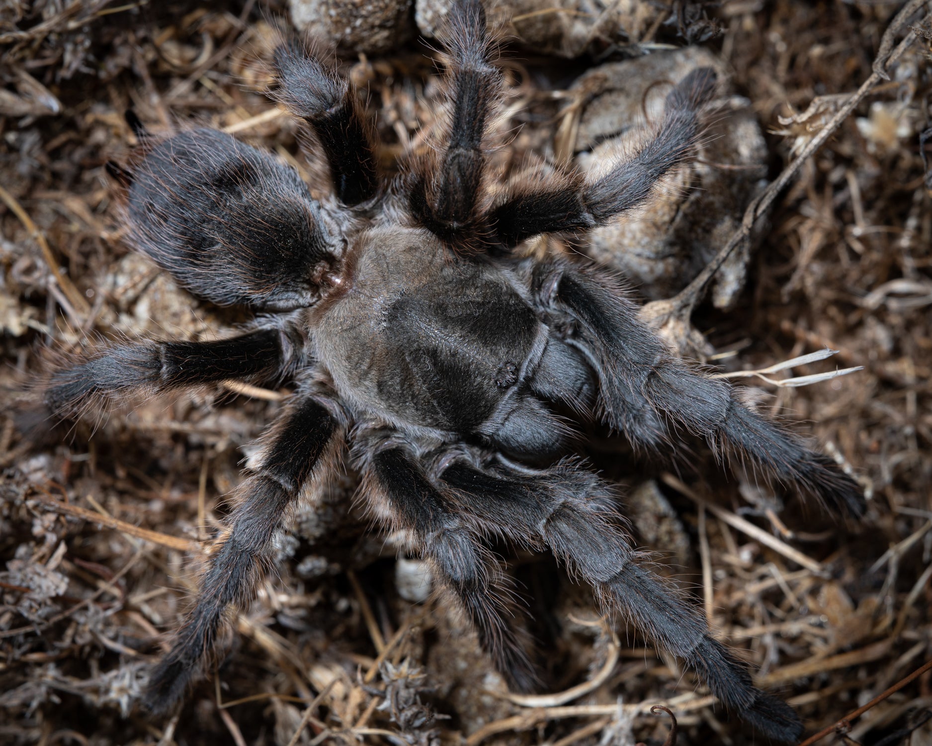 Steindachnerās Ebony Tarantula (Aphonopelma steindachneri) is a beautiful terrestrial species native to California and Baja California, Mexico. Known for its deep, velvety black to dark brown coloration, this understated beauty is often compared to the beloved Grammostola pulchra (Brazilian Black) for its similar dark elegance.